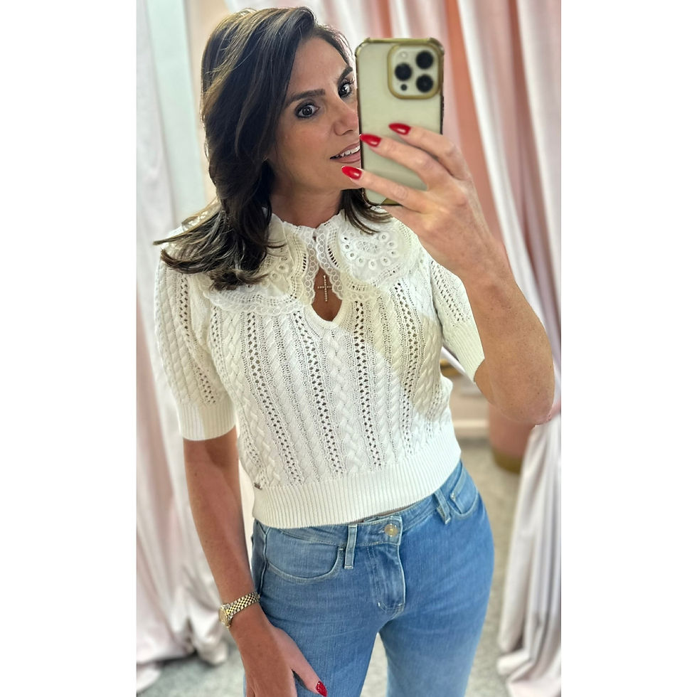 Elisabetta Franchi White Micro-braided Knit Bodysuit